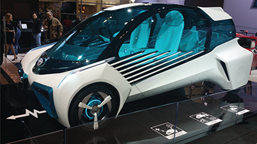 Toyota concept cars showed future integrated technology ideas. This Toyota FCV+ is a hydrogen fuel call vehicle.