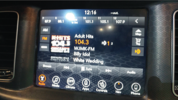 Dodge started to integrate the UI more by bringing the hexagon design detail onto the screen, mimicking the speaker grates.